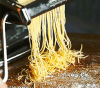 Pasta comes in over 600 shapes and their names are generally Italian words that are descriptive of their shapes. "Spaghetti (‘cord’), vermicelli (‘little worms’), rotini (‘spirals’), fusilli (‘spindles’), tortellini (‘little cakes’), linguini (‘little tongues’), conchiglie (‘shells’), fettuccine (‘small ribbons’), penne (‘quills’) and capellini (‘fine hairs’) are the savory little goodies that are essential to any pantry." Pasta can be homemade or shop bought.